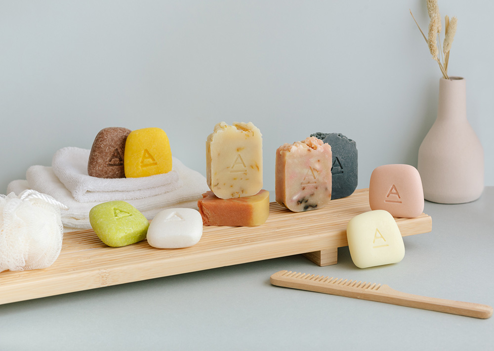 Our team designed the shapes of the shampoo, cream, and soap bars, as well as their packaging, all with the aim of minimizing environmental impact by using only FSC-certified paper, glass, and aluminum.